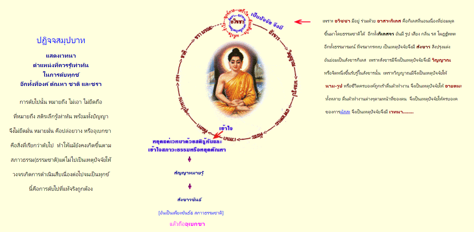 นอนเนื่องอยู่ในจิต อาสวะกิเลส โสกะ ปริเทวะ ทุกข์ โทมนัส อุปายาส มรณะ พรั่งพร้อมด้วย โสกะ ปริเทวะ ทุกข์ โทมนัส อุปายาส เพราะชาติเป็นปัจจัย จึงมีชรา อันวนเวียน เร่าร้อนเผาลน เพราะภพเป็นปัจจัย จึงมีชาติ เพราะอุปาทานเป็นปัจจัย จึงมีภพ เพราตัณหาเป็นปัจจัย จึงมีอุปาทาน เพราะเวทนาเป็นปัจจัย จึงมีตัณหา |